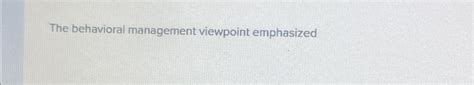 Behavioral viewpoint behavioral viewpoint emphasized the importance of understanding human behavior and. The behavioral viewpoint emphasized the importance of understanding human behavior and of motivating employees toward achievement. The big picture the second of the three historical management perspectives was the behavioral viewpoint, which emphasized the importance of understanding human behavior and of motivating employees toward achievement. Behavioral management theory.