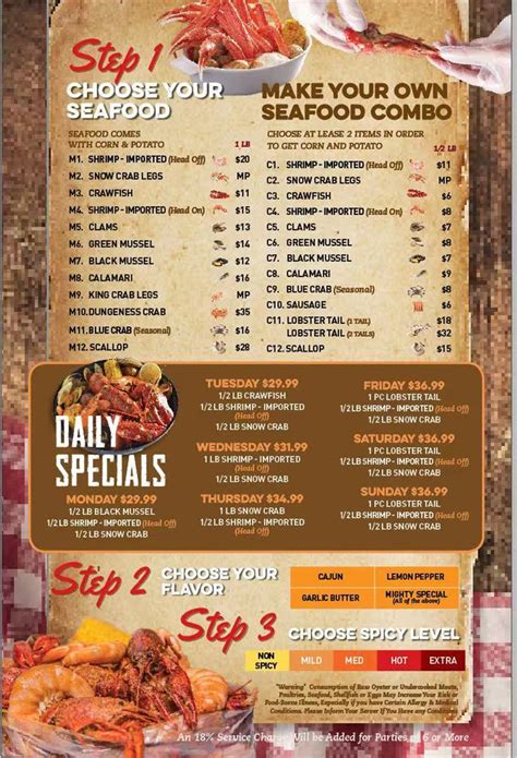 Menu items and prices are subject to change without prior notice. For the most accurate information. Menu is for informational purposes only. There aren't enough food, service, value or atmosphere ratings for the mighty crab, arkansas yet. The mighty crab staten island.